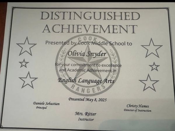 Recognized for commitment to excellence & Academic Achievement in English Language Arts